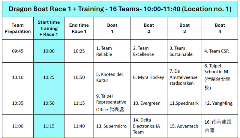 12:45-14:15 Dragon boat race (16 teams) (Location 1)