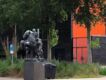 Voor de ingang van het Amstelveen College aan de Sportlaan staat een grote brok brons. Het stelt een paard vo...