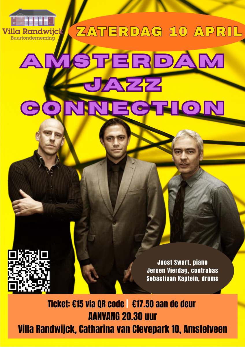 Joost Swart, piano, is bekend om zijn rijke harmonieën en subtiele spel. Jeroen Vierdag, contrabas, zorgt voor een stevige basis met een sterke groove en gevoel voor timing. Sebastiaan Kaptein, drums, houdt het geheel in beweging met een flexibel en muzikaal drumspel. Samen zorgen zij voor een levendige jazzervaring die elk optreden uniek maakt. Gewoon bij jou om de hoek...! Koop vast een ticket via de QR code.