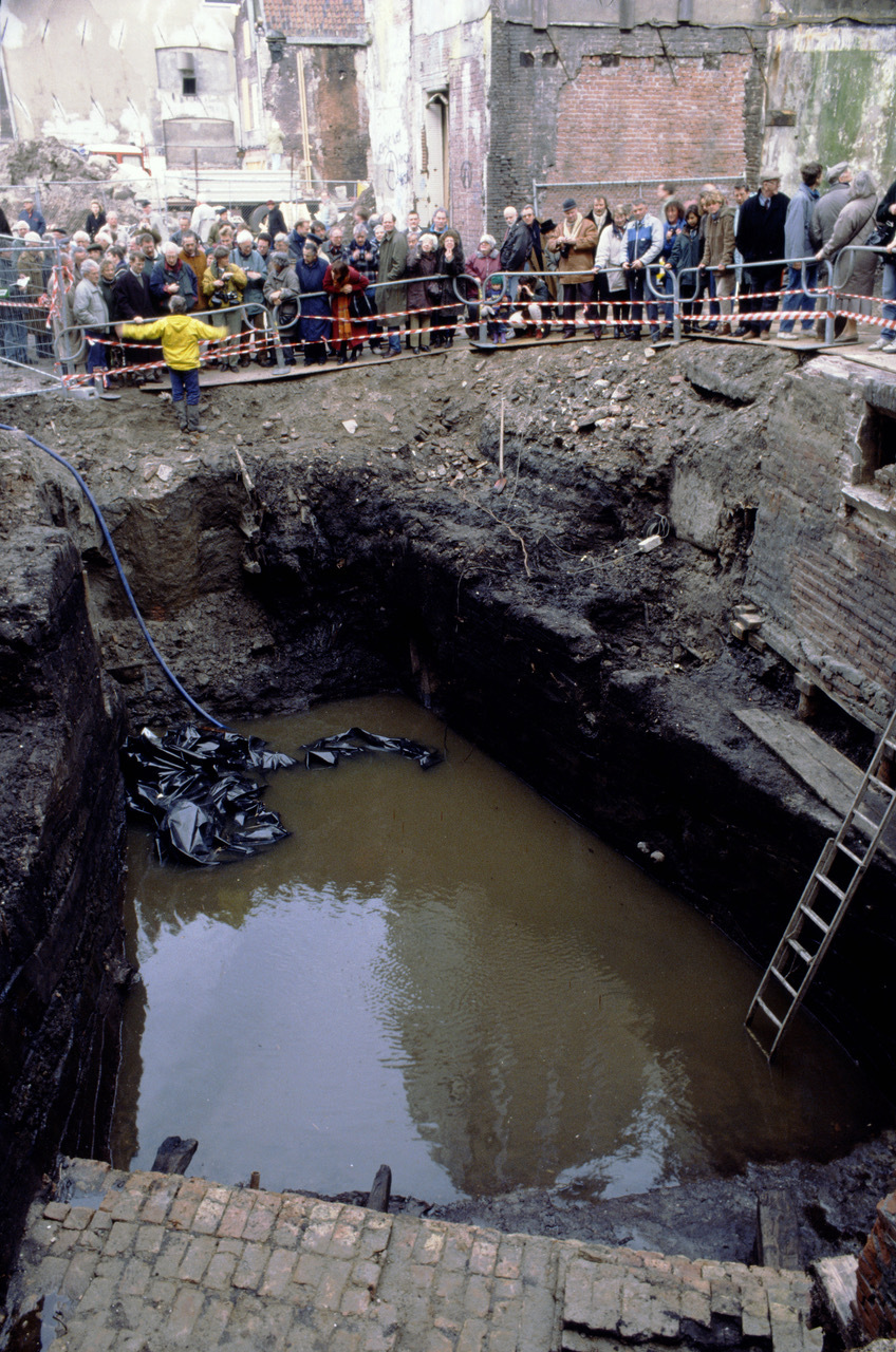 Foto: Het loopt storm bij de opgraving van het Kasteel van Amstel, Bureau Monumenten en Archeologie