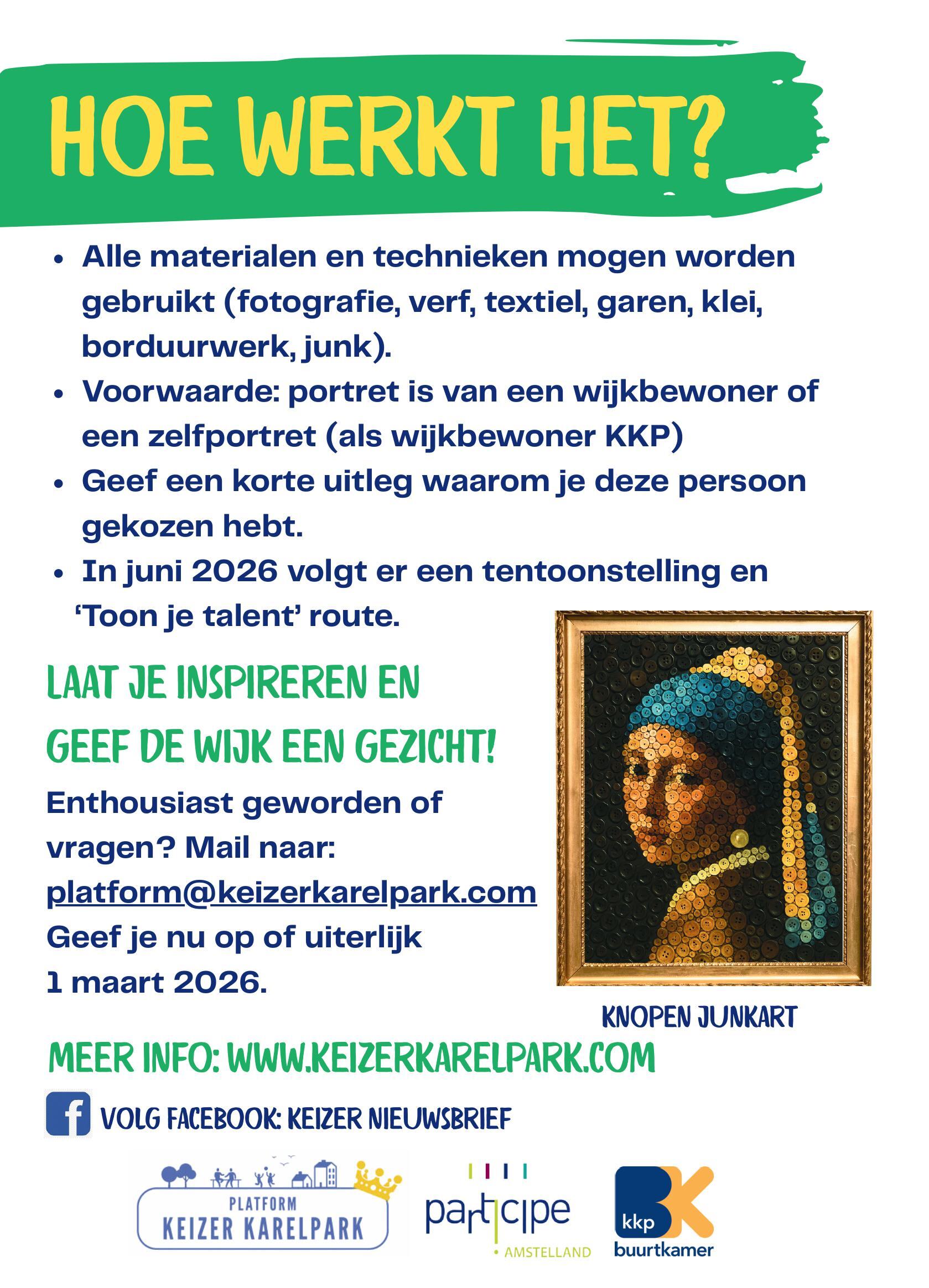 • Enige voorwaarde is dat het een portret van een wijkbewoner is