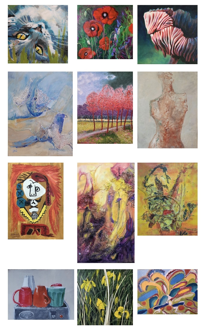 We noemen ons de DiMigroep (DinsdagMiddaggroep). We werken ieder op een eigen manier en in een eigen stijl met als gemeenschappelijke basis acrylverf. Elke maand kiest één van ons een thema dat als inspiratie kan dienen, maar vrijheid staat voorop, van abstract tot realistisch, alles mag.