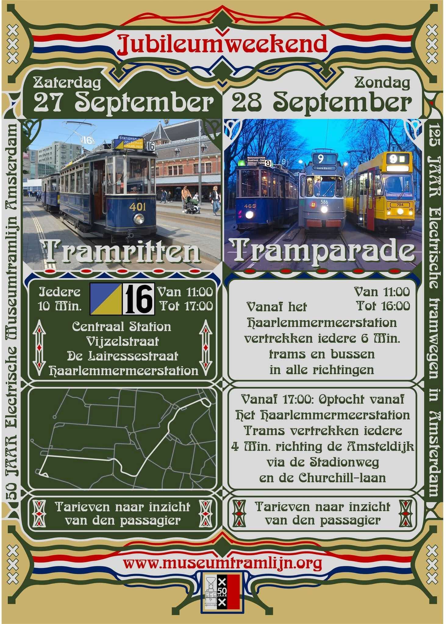 Op zaterdag 27 september pakt de Electrische Museumtramlijn Amsterdam groots uit met een speciale dienstregeling op lijn 16. Verschillende historische museumtrams rijden die dag mee en – het mooiste van alles – iedereen mag gratis instappen! De exacte tijden worden bekend gemaakt op de website van de Elektrische Trams in Amsterdam.