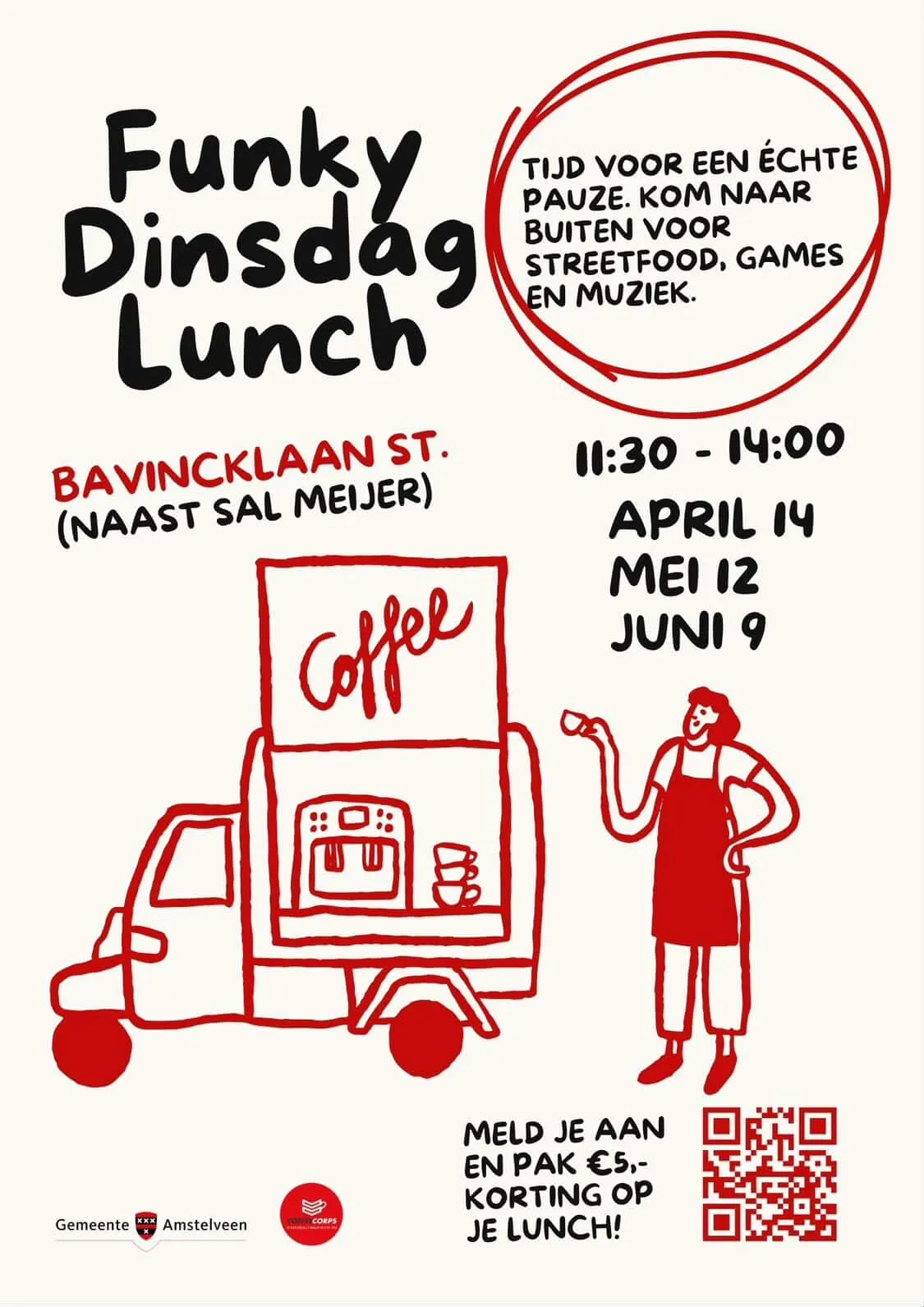 Ruil je bureau in voor de zon: de Funky Dinsdag Lunch! Zit jij normaal gesproken met je lunch achter je laptop? Of in een overvolle kantine? Nu de lente echt begonnen is, dagen we je uit om het dit keer anders te doen. De Funky Dinsdag Lunch is hét alternatief voor je dagelijkse kantoorroutine. We verhuizen de lunchtafel naar buiten! Geen muren, geen schermen, maar simpelweg genieten van de eerste zonnestralen, goede muziek en je buren in de wijk.