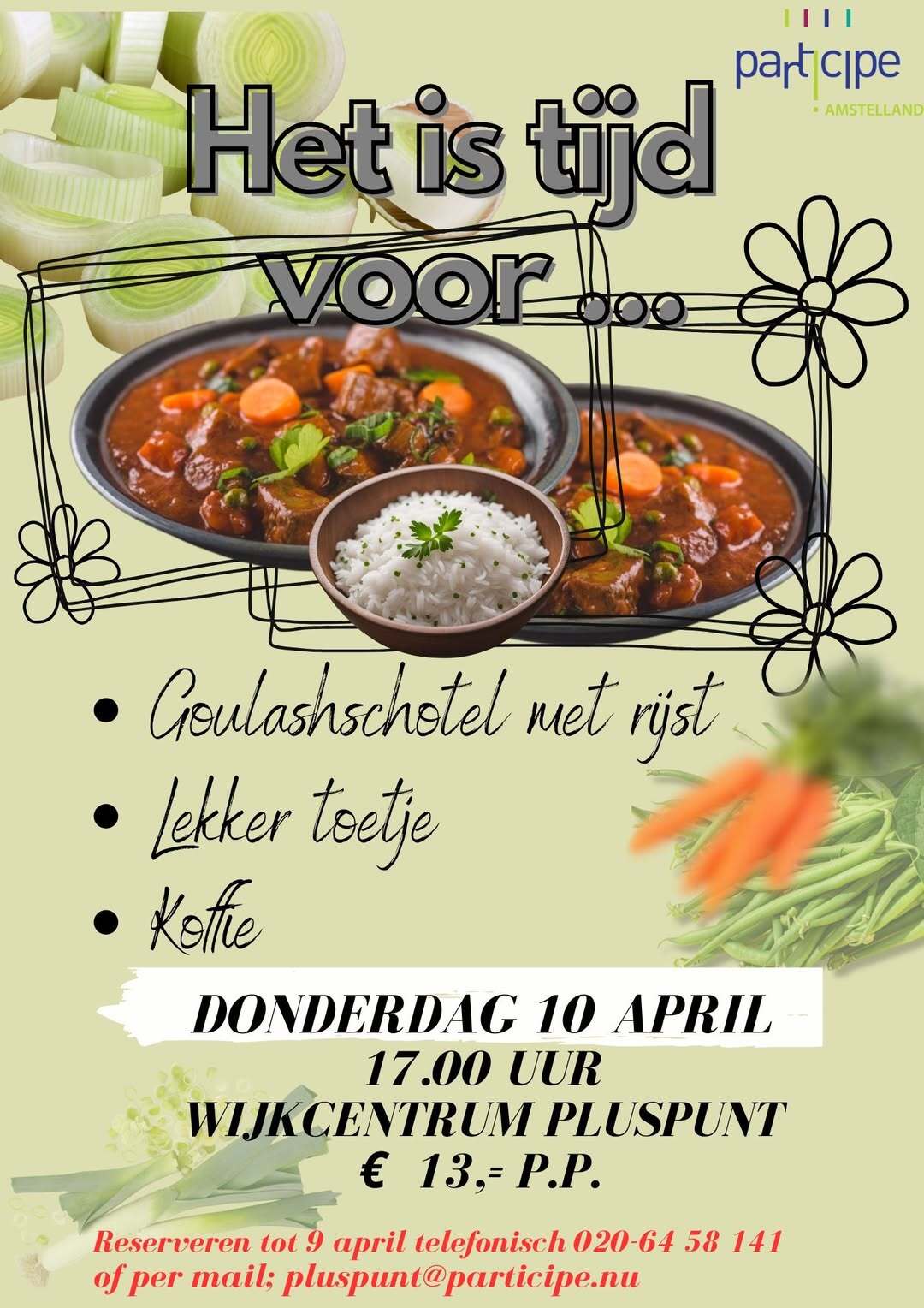 Donderdag 10 april is het weer tijd voor de heerlijke Goulashschotel.