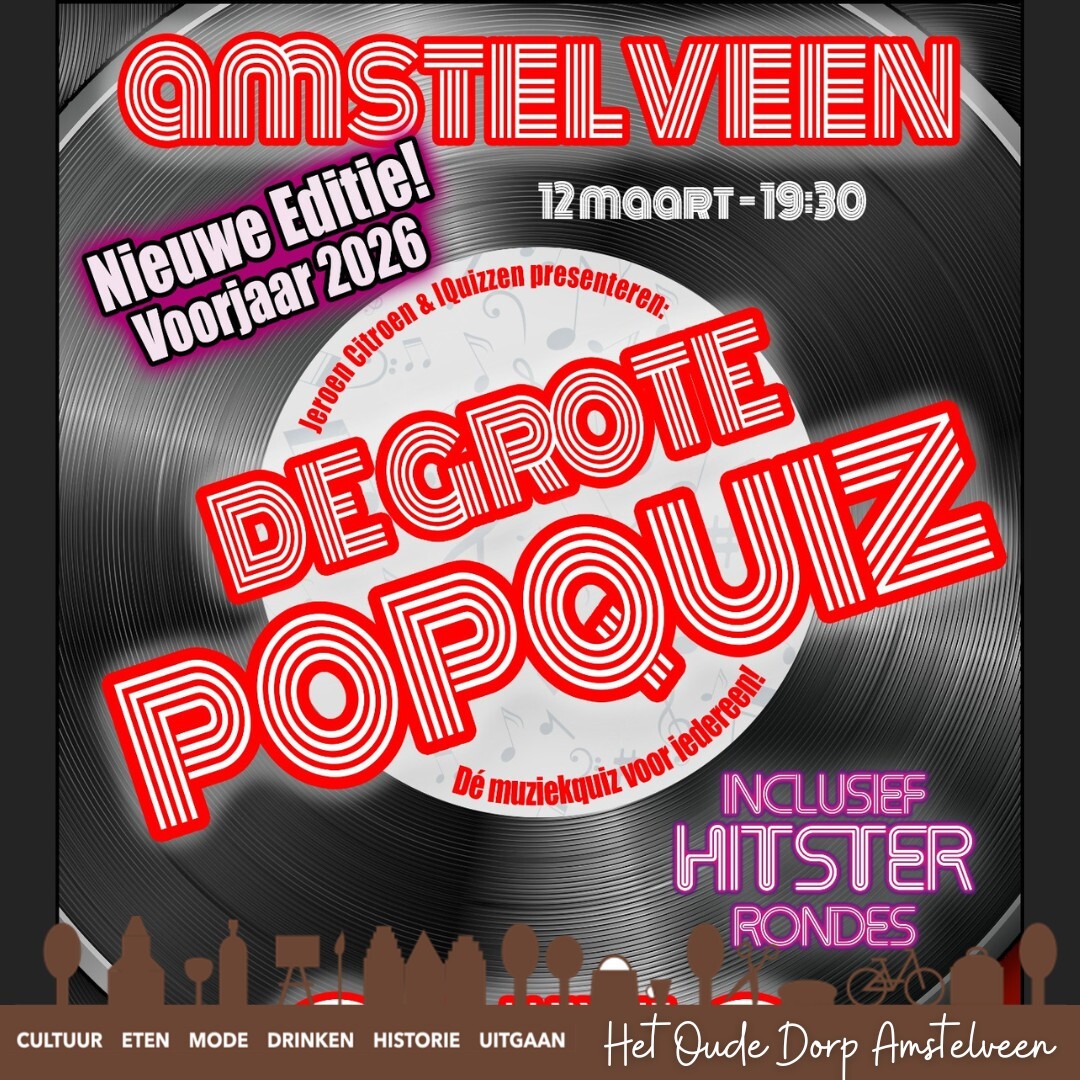 De MuziekQuiz voor iedereen komt dit jaar ook naar Amstelveen! Wil jij met jouw team (2 tot 6 pers) meedoen aan deze gezellige avond vol met de lekkerste muziek, de tofste fragmenten met videoclips en natuurlijk de leukste vragen? Geef je team dan direct op via www.jeroencitroen.nl/aanmelden