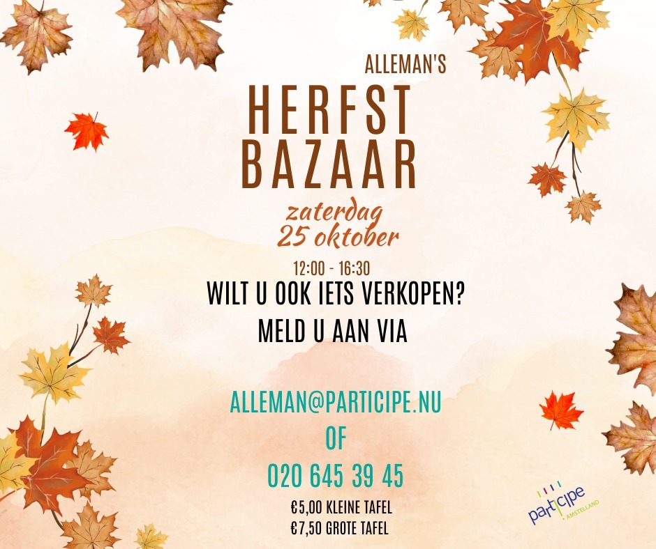 Op zaterdag 25 oktober organiseert wijkcentrum Alleman weer een Herfst Bazaar!