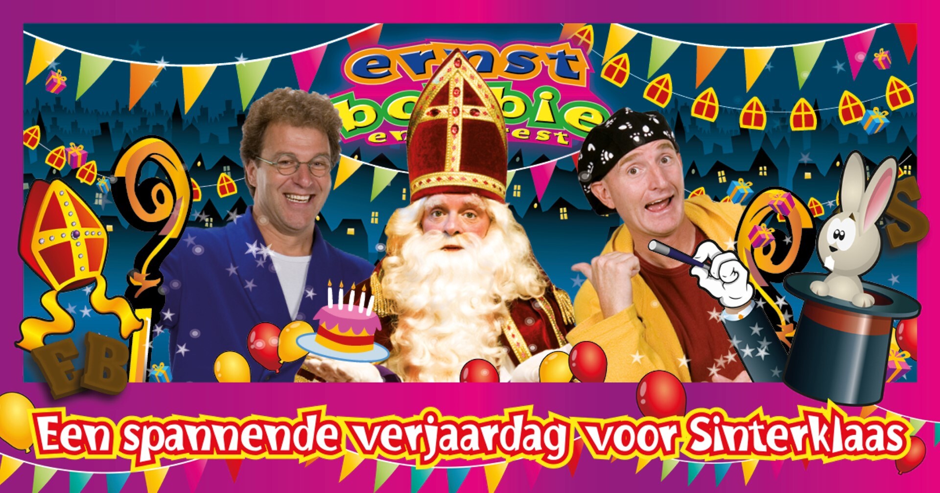 In het nieuwe Sinterklaasavontuur van Ernst en Bobbie organiseren zij een verjaardagsfeestje voor de Sint. Ernst wil er een rustig feest van maken, maar Bobbie heeft andere ideeën en verbouwt de theaterzaal tot een heus bowlingcentrum. Een spannende verjaardag voor Sinterklaas (3+) is de leukste Sinterklaasvoorstelling voor het hele gezin vol Ernst-en-Bobbie-liedjes, Sinterklaasliedjes, pieten, spanning en een hoop plezier. Bezoek de voorstelling op zaterdag 22 november om 14:00 of 16:00 uur.