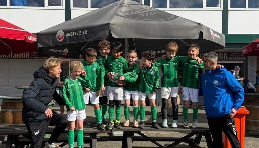 Bron: G.Bakker/H De JO8-1 van Roda '23 heeft vandaag een geweldige prestatie geleverd door kampioen te worden. Op eigen veld speelden de pupillen een spannende kampioenswedstrijd tegen Legmeervogels uit Uithoorn, die uiteindelijk met 4-3 werd gewonnen. In een enerverende wedstrijd gaven de jonge spelers alles wat ze in zich hadden. Met veel inzet, teamwork en plezier wisten Gabriel, James, Jaysen, Youssef, Sem, Liam, Freek en Ayaz de overwinning over de streep te trekken. Het publiek werd getrakteerd op een mooie en spannende wedstrijd, waarin beide teams aan elkaar gewaagd waren. Na het laatste fluitsignaal barstte het feest los: de spelers vierden het kampioenschap met taart en namen trots een echte kampioensschaal in ontvangst. Onder begeleiding van trainers Seroud Rahman, Olivier van der Salm en Michiel van Tol heeft het team zich dit seizoen knap ontwikkeld, met dit kampioenschap als prachtige beloning. Een topprestatie van deze jonge talenten! Spelers: Gabriel, James, Jaysen, Youssef, Sem, Liam, Freek en Ayaz Trainers: Seroud Rahman, Michiel van Tol, Olivier van der Salm