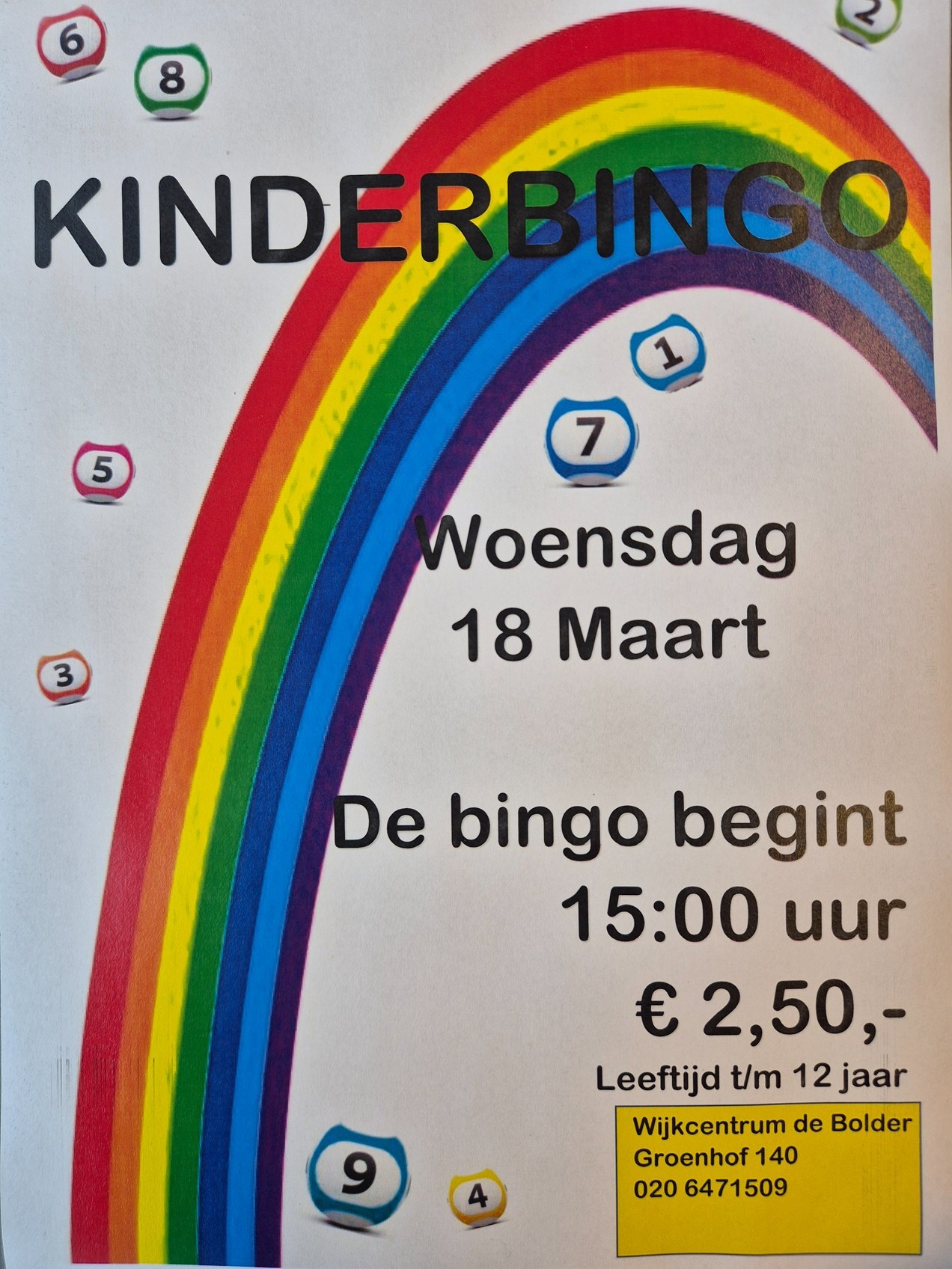 Op woensdag 18 maart is er weer een gezellige kinderbingo in De Bolder.