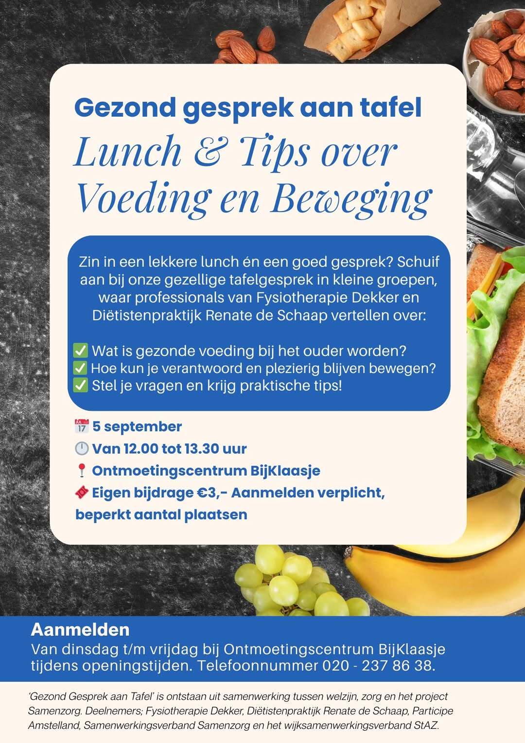 Lunch en Tips over voeding en beweging met gespecialiseerde professionals.
