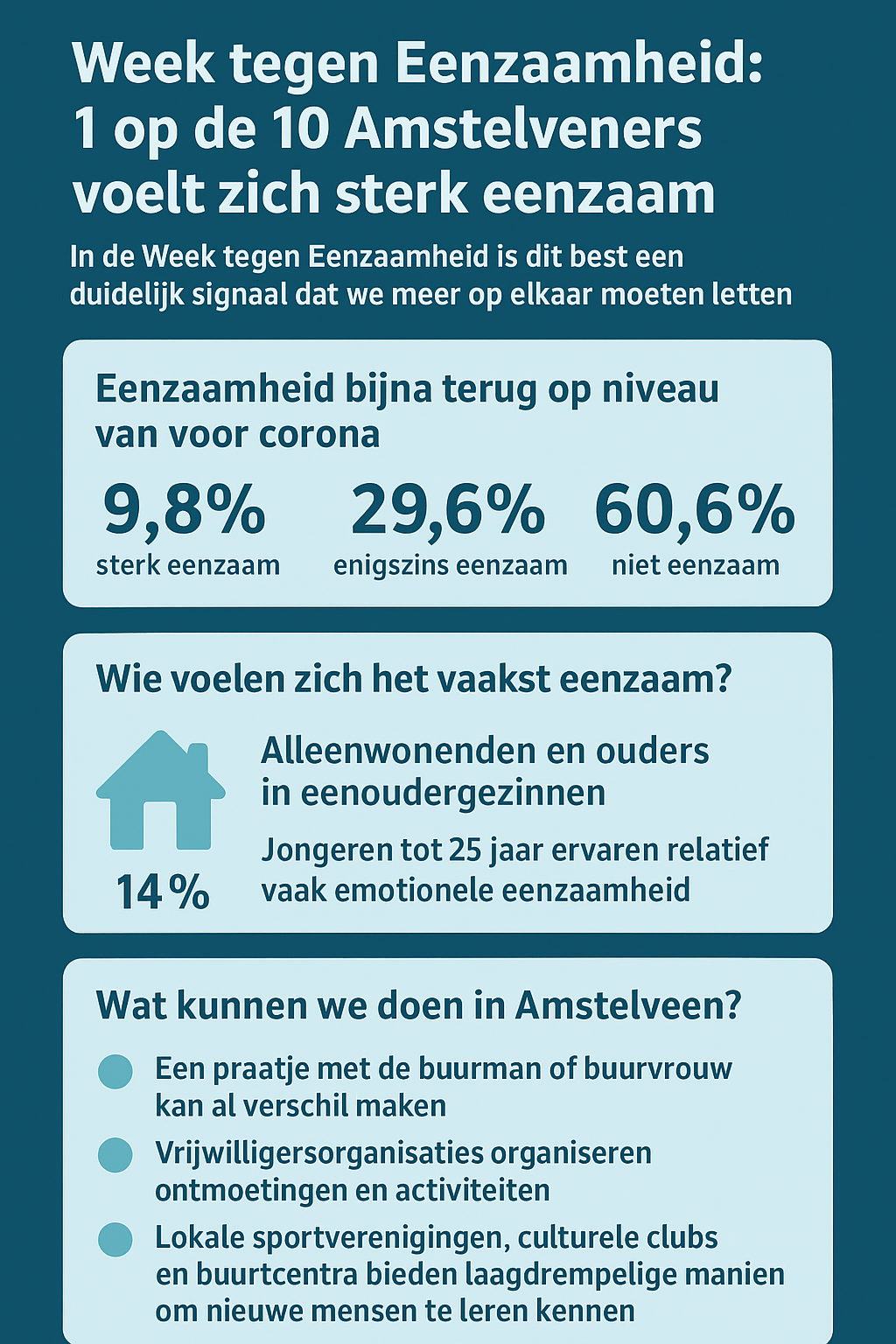 Week tegen Eenzaamheid: 1 op de 10 Amstelveners voelt zich sterk eenzaam
