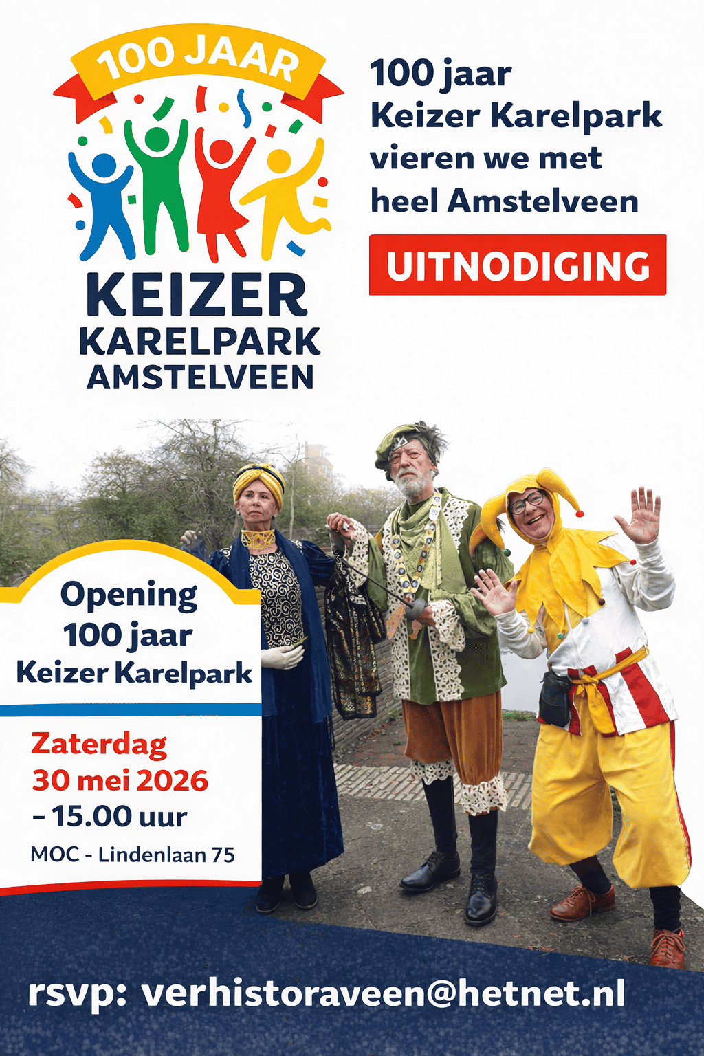 Het is bijna zover: de festiviteiten voor de viering van 100 jaar Keizer Karelpark gaan bijna van start. Zaterdag 30 mei van 15.00 tot 17.00 uur is de officiële opening van de feestweek in het MOC, Lindenlaan 75, en u kunt daarbij zijn.