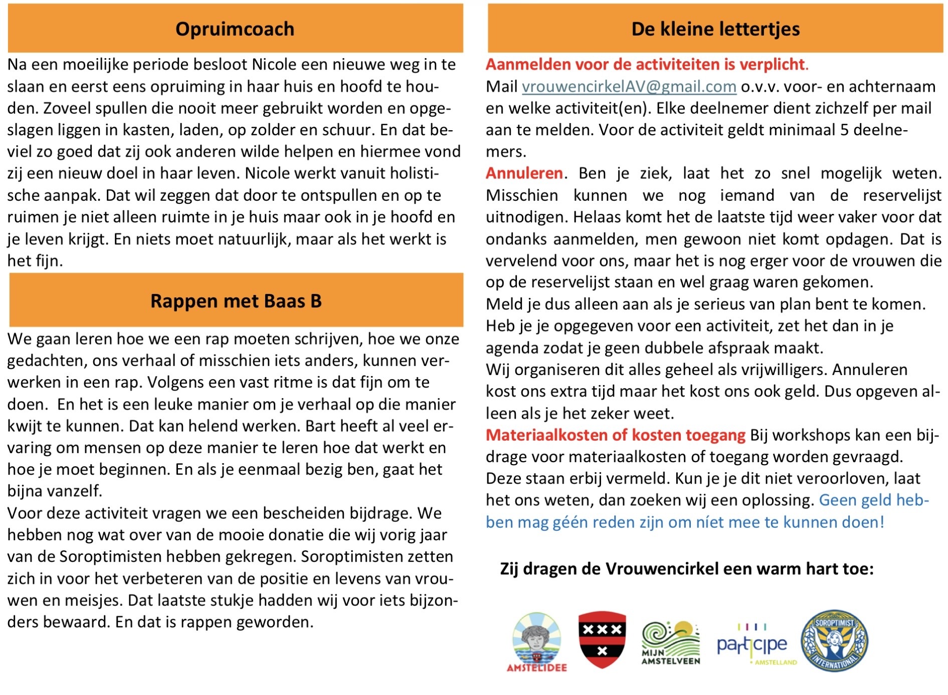 Bron: Vrouwencirkel Amstelveen/H Rondje Vrouwencirkel voor de maand februari 2026 is uit met weer nieuwe activiteiten. Volgens ons ook weer erg leuke activiteiten. Wil je Rondje Vrouwencirkel zelf in je mailbox ontvangen? Mail vrouwencirkelAV@gmail.com.