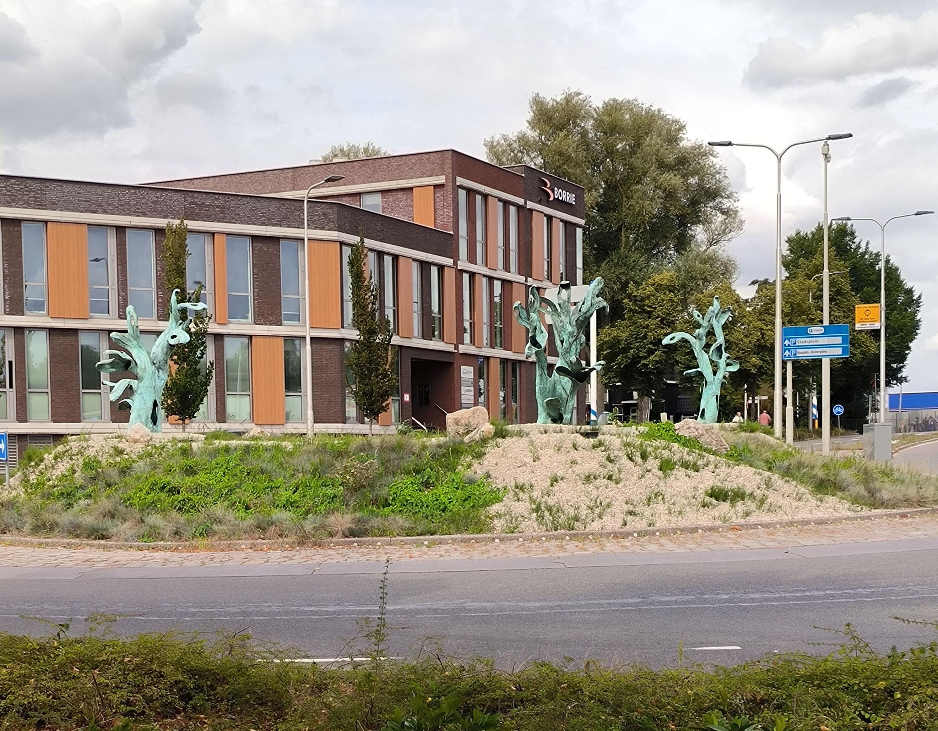 Wat valt er verder op aan deze drie kunstwerken? Eigenlijk niets. En dat is vast ook wel de bedoeling geweest bij de opdracht van de gemeente. Misschien dacht de commissie: ‘Laten we voor iets onopvallends kiezen, dat rotondetje is zo klein, de automobilisten en buschauffeurs hebben al hun aandacht nodig om die bocht zonder kleerscheuren door te komen, laten we ze dus maar niet afleiden door iets opdringerigs.’