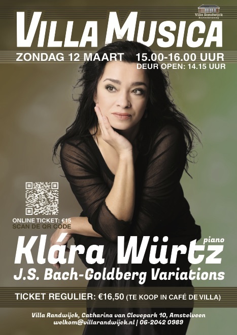 De natuurlijkheid van haar spel, de schoonheid van haar toon en haar feilloze techniek maken pianiste Klára Würtz een favoriete en geliefde artiest bij het publiek over de hele wereld. Vanmiddag brengt zij The Goldberg variations van Johannes Sebastian Bach ten gehore.