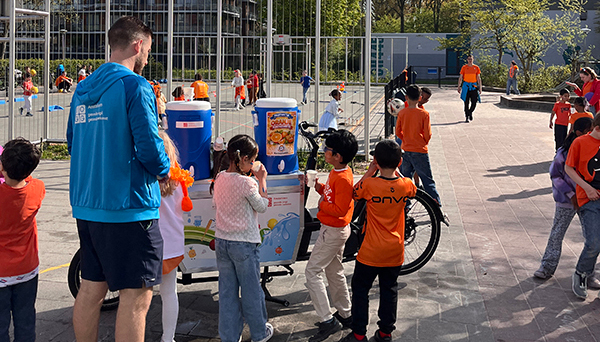 Bron: AmstelveenSport/H Met Koningsdag in zicht bezoeken de buurtsportcoaches en JOGG-regisseurs van AmstelveenSport samen Amstelveense basisscholen. Zij zorgen voor een programma vol sport, spel en aandacht voor gezonde keuzes. De buurtsportcoaches doen dat met De Beweegbus, een rijdend podium voor sport- en spelactiviteiten. De JOGG-regisseurs laten kinderen op een smakelijke manier kennismaken met het belang van voldoende water drinken. JOGG-regisseur Sven Kuit rijdt langs de scholen met de waterbakfiets, beladen met fruitwater — door de kinderen zelf gedoopt tot 'Koningswater'. Alle leerlingen krijgen ook een appel mee als gezonde snack. Sven betrekt de kinderen actief bij het thema: hij legt uit waarom voldoende water drinken belangrijk is, en laat zien hoe je water lekker en gezond kunt maken met fruit. Het fruitwater wordt mede mogelijk gemaakt door Zorg en Zekerheid. Aankomende vrijdag 24 april sluit AmstelveenSport het programma af met nog twee bezoeken, waarmee in totaal zes Amstelveense basisscholen zijn bezocht. Door kinderen al vroeg te laten ervaren dat bewegen en water drinken goed samen gaan, werkt AmstelveenSport aan een generatie die gezonde keuzes vanzelfsprekend vindt. Foto: Koningsspelen Amstelveen Fotocredits: AmstelveenSport