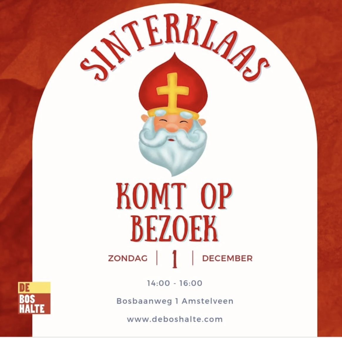 Sinterklaas is weer in het land en hij komt tijdens dat hij ook even bij de Boshalte op bezoek komt. Komen jullie ook gezellig langs?