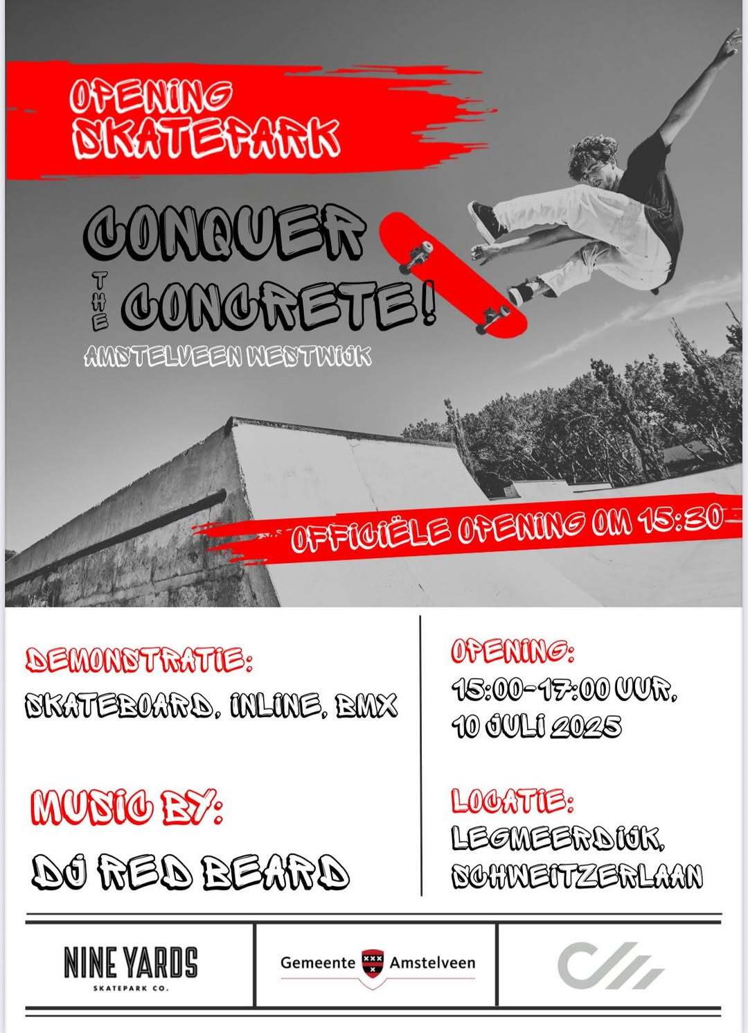 Donderdag is de grote opening van het Skatepark in Westwijk, inclusief een DJ en een demonstratie! 10 juli - vanaf 15:00 uur - Schweitzerlaan