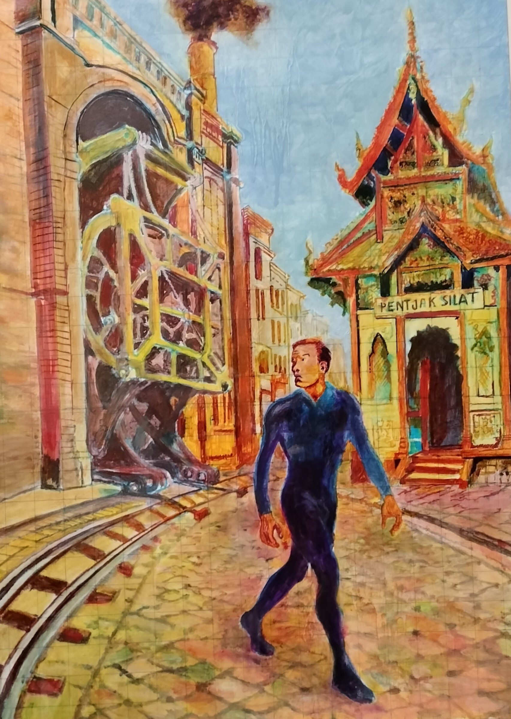 Bron: Karin de Koning/H Aan de januari-expositie 2026 in KunstLokaal SAKB kon iedereen die wilde, deelnemen. Wel moest het werk passen binnen het thema ‘Verrassende combinaties’. Er zijn prachtige schilderijen binnengekomen. Soms zie je direct wat de ‘verrassende combinatie’ is, bijvoorbeeld de danseressen van Matisse in de kamer van Van Gogh. Maar vaak moet je echt wel even puzzelen. Gelukkig staat er ook uitleg bij de afbeeldingen. Maar het is leuker om eerst zelf te kijken of je het raadsel op kunt lossen. Sommige werken zijn erg intrigerend. Zo zie je op het schilderij van Cor Bakker een slanke man een straat uitlopen. Links achter hem bevindt zich een groot dreigend mechaniek, rechts achter hem een niet-westerse kerk. Wat doen die drie elementen bij elkaar? Het is zeker een verrassende combinatie. Cor legt uit dat hij zich gebaseerd heeft op een droom die hij had: "Ik loop naar het theater waar ik een dansvoorstelling doe. Als ik door de Charlotte de Bourbonstraat loop, zie ik links een enorme machine die als een ademhaling op rails uit en in een grote loods beweegt. Rechts zie ik een Indonesische kerk waarop "Pentjak Silat" staat." Het is een surrealistisch beeld geworden. Surrealisten gebruikten ook vaak dromen en hielden ervan om combinaties te maken van dingen die niet bij elkaar hoorden. In KunstLokaal SAKB kun je hedendaags surrealisme zien. Toegang gratis Openingstijden: Over het algemeen, m.u.v. schoolvakanties: Ma / di / wo / do / vr: Meer info: zie sakb.nl