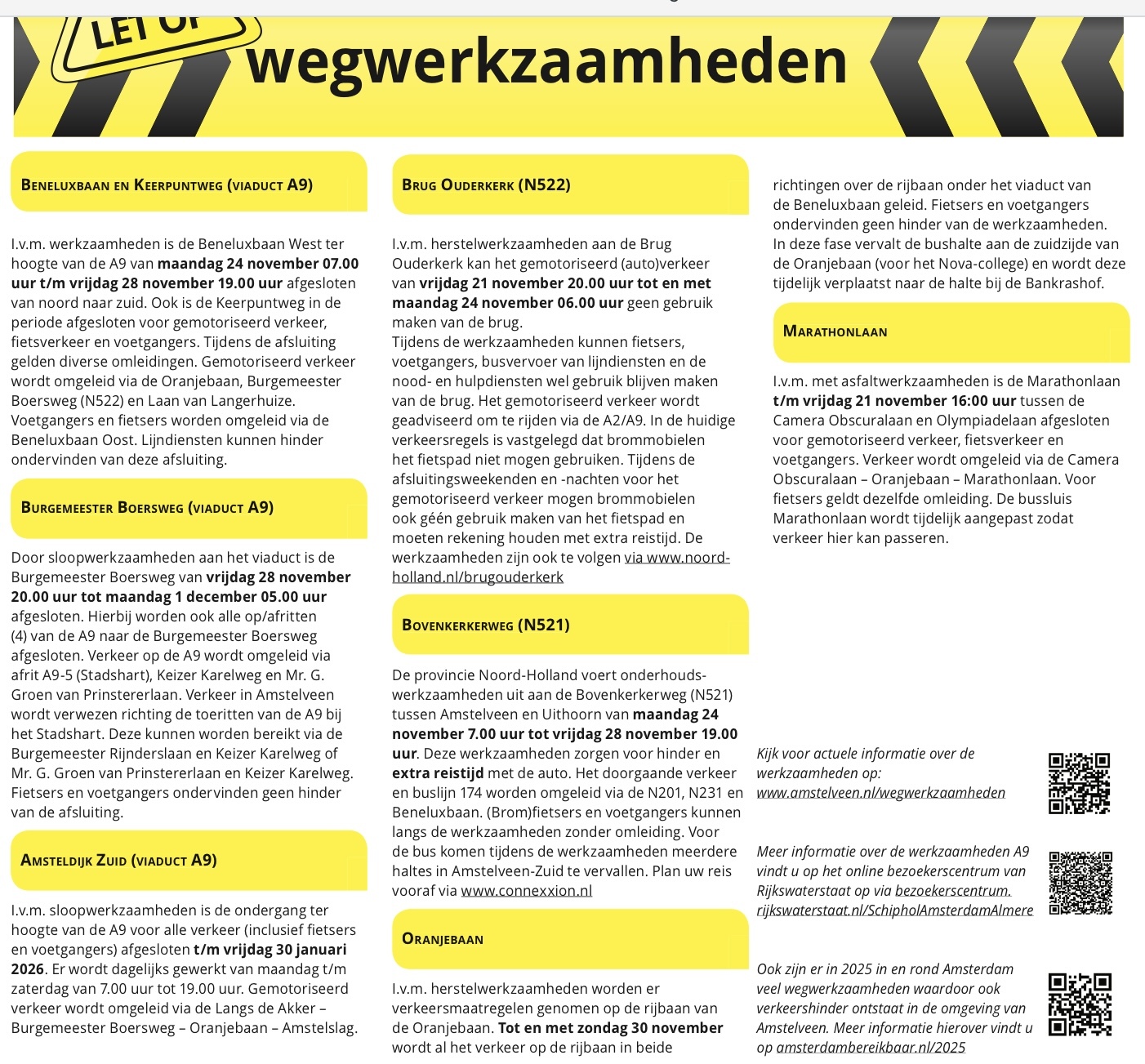 Wegwerkzaamheden Amstelveen t/m 1 december
