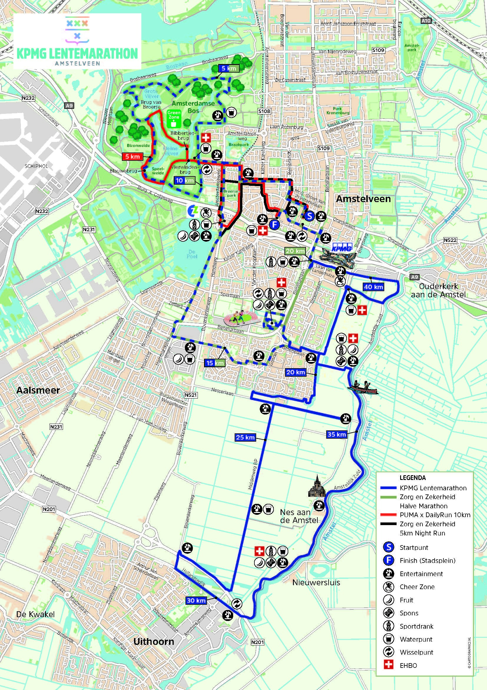 Bron: KPMG Lentemaraton/B In het weekend van 14 en 15 maart 2026 vindt de KPMG Lentemarathon Amstelveen plaats. Tijdens dit sportweekend komen duizenden hardlopers naar Amstelveen voor verschillende afstanden, waaronder de marathon, halve marathon, 10 kilometer, Kids Run en de nieuwe 5 KM Night Run op zaterdagavond. Om het evenement veilig te laten verlopen worden in de stad tijdelijke verkeersmaatregelen genomen. De organisatie heeft een speciale bewonerspagina gelanceerd waarop inwoners eenvoudig kunnen zien welke straten tijdelijk afgesloten zijn en waar verkeershinder kan ontstaan. Hier staan ook alternatieve routes en praktische informatie voor bewoners en bezoekers. Tijdelijke afsluitingen op verschillende locaties Tijdens het marathonweekend zijn op meerdere plekken in Amstelveen tijdelijke afsluitingen of verkeersbeperkingen van kracht. Zo is onder andere de Amsterdamseweg gedeeltelijk afgesloten, zijn delen van de Rembrandtweg en Pieter Lastmanweg afgesloten rondom het start- en finishgebied, en zijn er verkeersmaatregelen op locaties zoals de Oude en Nieuwe Karselaan, Nesserlaan en Amsteldijk Zuid. Daarnaast zullen op verschillende kruispunten langs het parcours korte afsluitingen plaatsvinden wanneer lopers passeren. Bereikbaarheid voor bewoners De organisatie benadrukt dat er zoveel mogelijk rekening wordt gehouden met de bereikbaarheid van wijken. In diverse gebieden kunnen bewoners met een bewonerspas beperkt in- en uitrijden, en verkeersregelaars begeleiden het verkeer langs het parcours. Ook is er speciale aandacht voor nood- en hulpdiensten. Zij houden altijd vrije doorgang gedurende het evenement. Sportief weekend voor de stad De KPMG Lentemarathon is de afgelopen jaren uitgegroeid tot een van de grootste sportevenementen van Amstelveen. Het evenement trekt duizenden deelnemers en bezoekers naar de stad en zorgt voor veel sfeer langs het parcours, onder andere in het Oude Dorp en het Stadshart. “Wij begrijpen dat een evenement van deze omvang impact heeft op de bereikbaarheid in de stad. Daarom proberen we bewoners zo goed mogelijk vooraf te informeren en de hinder zoveel mogelijk te beperken,” aldus de organisatie. Bekijk alle maatregelen Bewoners kunnen alle verkeersmaatregelen, straatafsluitingen en tijden bekijken via: https://www.lentemarathon.nl/b... Vragen over de bereikbaarheid of het evenement kunnen worden gestuurd naar info@lentemarathon.nl Foto's: Lentemaraton