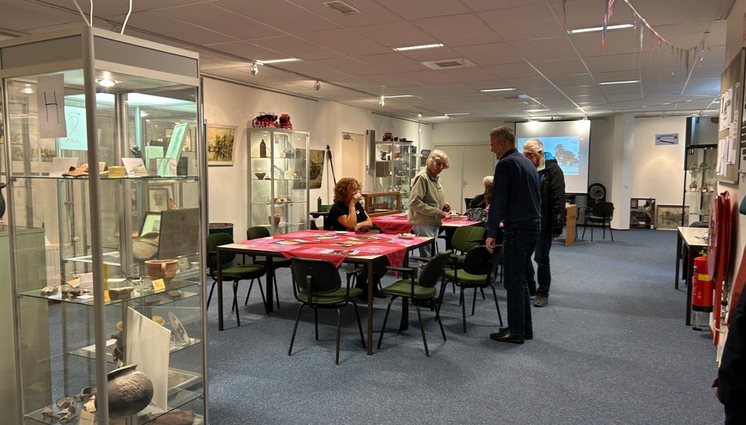 Het is altijd leuk om bezoekers binnen te krijgen die nog nooit bij de vereniging binnen zijn geweest. De verbaasde opmerkingen als “wat is het groot hier!” en “wat is er veel te zien!” zijn altijd leuk om te horen. En ze hebben gelijk. De vitrinekasten die gevuld zijn met de meest uiteenlopende voorwerpen. De grotere voorwerpen die teruggaan tot bijvoorbeeld de tijd van het turfsteken, zijn bijzonder om in het echt te zien. Schilderijen en kaarten geven een mooi beeld hoe Amstelveen of Nieuwer Amstel ooit was. De doorlopende diashow kreeg veel aandacht van bezoekers, de beelden van oude, en soms inmiddels verdwenen gebouwen, straatbeelden en andere objecten zijn altijd leuk om te bekijken. Soms komen ook herinneringen bij bezoekers weer boven. Ook de archeologische vondsten in het lokaal bij de archeologische vereniging, kregen veel bewondering. We zijn erg blij met al die leuke reacties en de goede gesprekken die we vandaag weer met bezoekers mochten hebben.