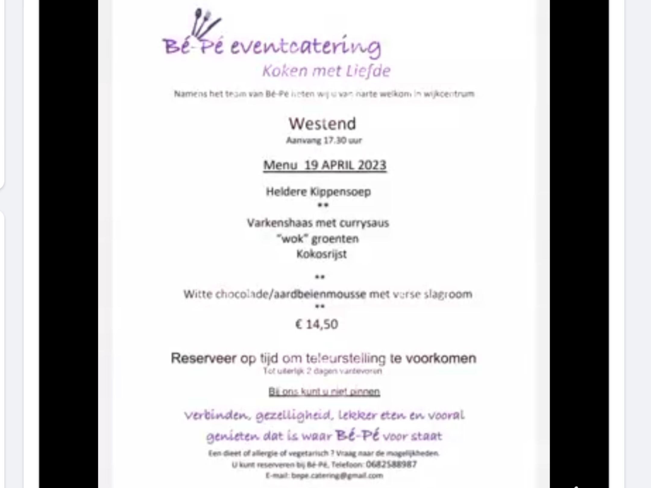 Wijkcentrum Westend serveert drie gangen maaltijd